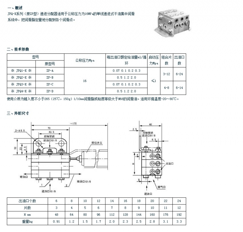 JPQ-K(ZP)系列递进式分配器(16MPa)